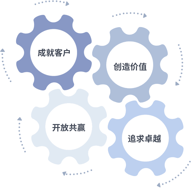 成就客户是一切决策的出发点,创造价值是衡量所有工作的标准,追求卓越是美狮贵宾会做事做人的态度,开放共赢是美狮贵宾会的格局也是最终的结果。价值观的齿轮环环相扣,推动着组织里的每个人不断向前。